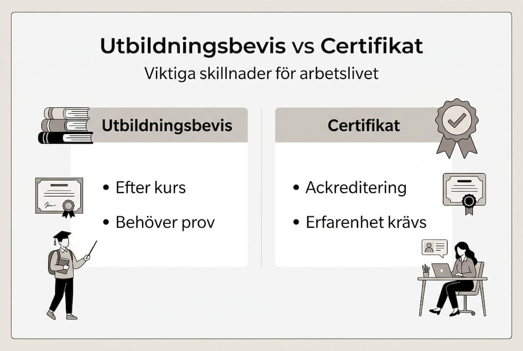 Många företagsledare använder begreppen utbildningsbevis och certifikat som synonymer. Det är ett misstag som kan få konsekvenser. De är fundamentalt olika dokument med olika krav och juridisk tyngd.